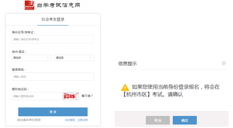 注册审核通过后,在“社会考生登录”界面使用身份证号登录,登录密码为注册时设定的密码。登录时需选择地市/县区,所选地市/县区即为参加考试的地区,系统会有信息提示。