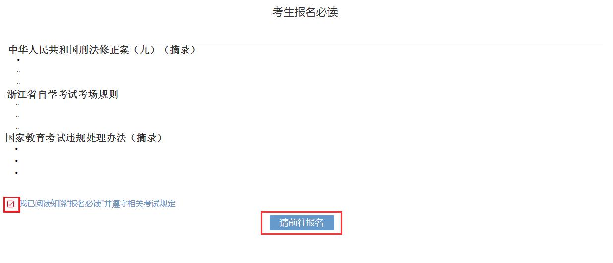 (2)阅读“考生报名必读”-在“我已阅读知晓‘报名必读’并遵守相关考试规定”前方框内打勾-“请前往报名”。
