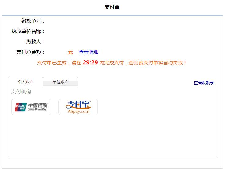 3.进入支付页面,完成支付。电子缴款凭证在浙江政务服务网查看,报名信息在自学考试信息网“我的报名-报名信息”中查看。
