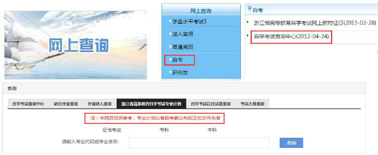 专业计划:首页-网上查询-自考-自学考试查询中心-浙江省高等教育自学考试专业计划