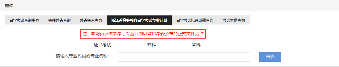 网上查询-自考-自学考试查询中心-浙江省高等教育自学考试专业计划