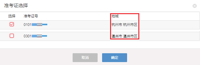 只有一个准考证的考生,系统直接显示,无需选择。有二个或以上准考证的考生需选择使用哪个准考证进行毕业申请登记,所选准考证下须有合格课程。系统根据准考证号默认确定考生提交毕业申请材料的教育考试机构,有二个或以上准考证的考生按实际常驻地等情况选定用于毕业申请登记的准考证,避免跨地区提交毕业申请材料。对应关系参看《浙江省自学考试毕业申请登记所选准考证与提交材料县区对照表》(附件2)。