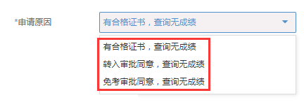 有二种及以上申请原因的,每种原因按步骤操作提交一次,不能在同一界面上更换申请原因、上传附件和添加补录成绩。