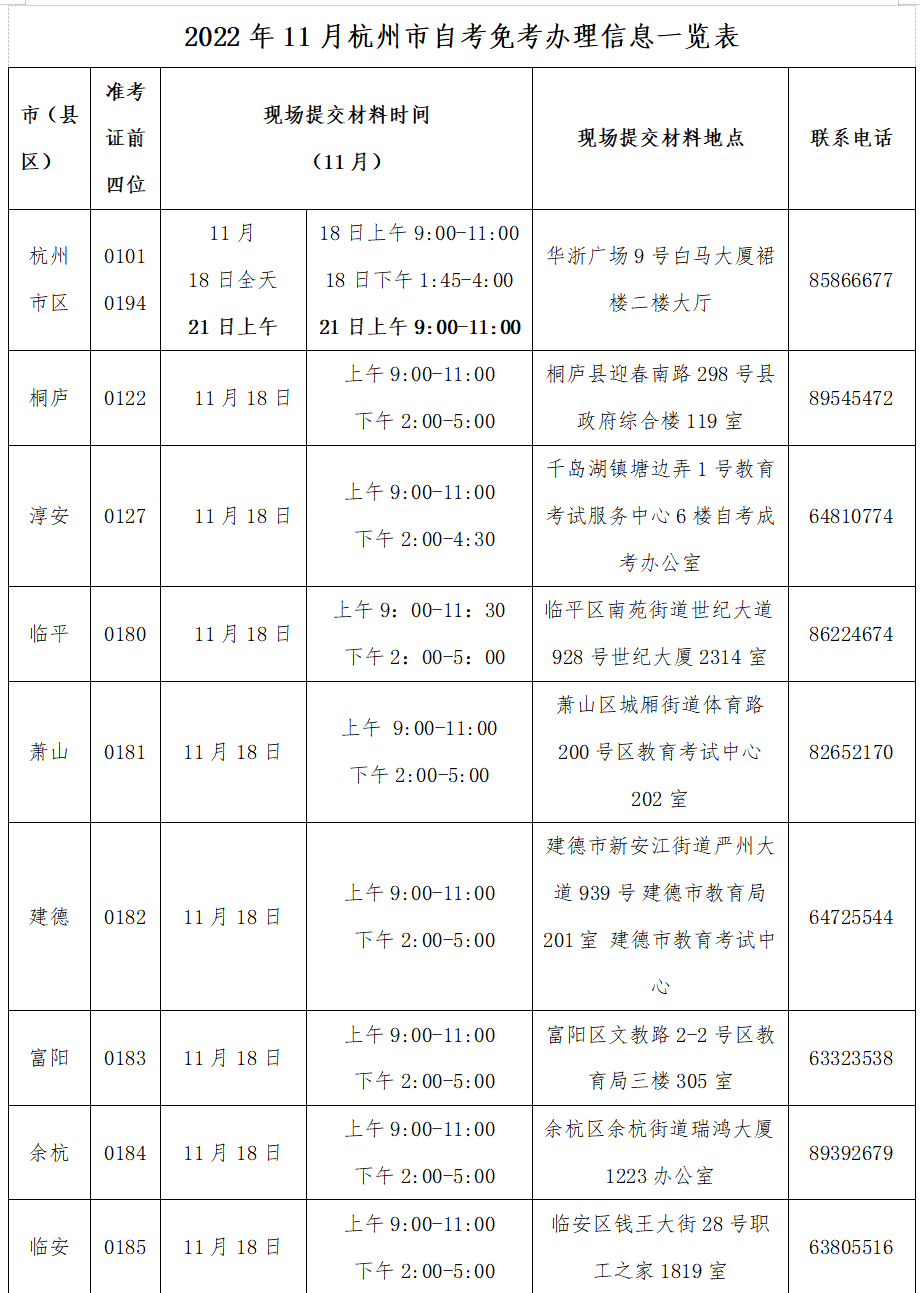 2022年11月杭州自学考试免考办理通知