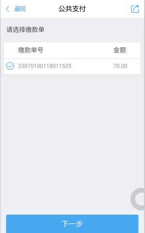 步骤三:选择相应的缴款单号,并点击“下一步”;
