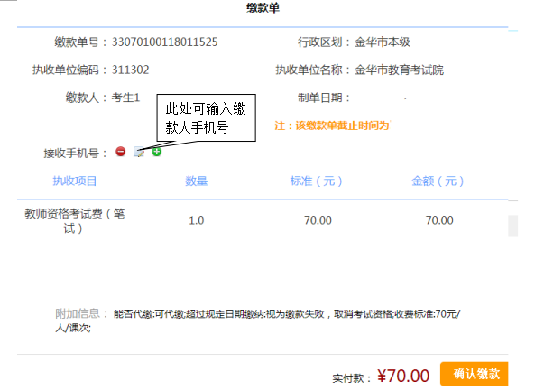 特别提醒:缴款人可设置多个手机号接收缴款结果信息。缴款成功后,手机将会收到一条由浙江政务服务网发出的缴款成功短信,请缴款人务必保存好此条短信,以便查对。