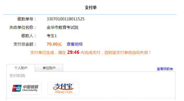 2. 网上缴费:考生可访问“浙江政务服务网”进行网上缴费。