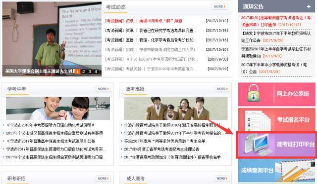 1、进入“宁波市教育考试院”网站(http://nbeea.nbedu.gov.cn/),点击“准考证打印平台”。