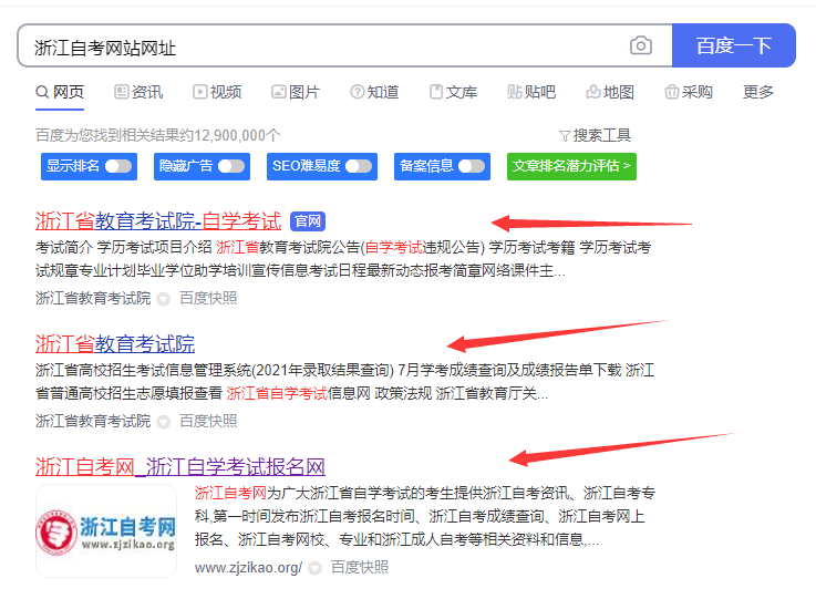 第一步:百度搜索关键词“浙江自考网站网址”即可找到网站,eg如下: