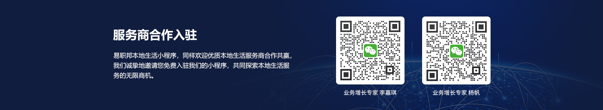 易职邦同样欢迎本地生活服务商与其他行业有志伙伴入驻加盟我们!