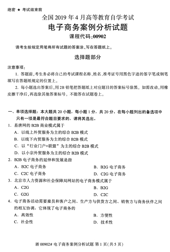 下一篇:全国2019年4月自考00896电子商务概论真题