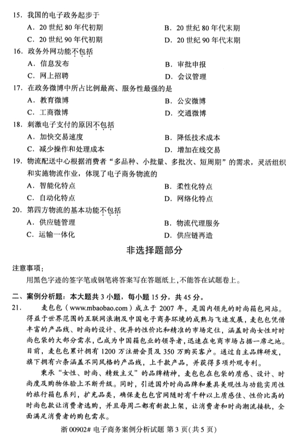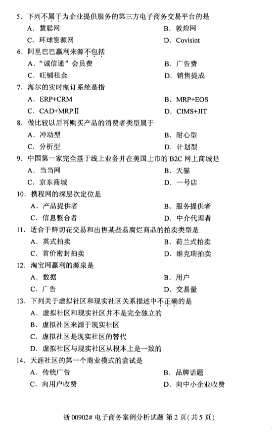 - 2024年10月浙江自考00067财务管理学试题 12-20