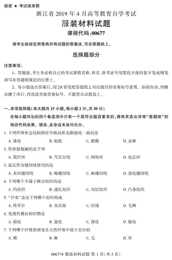 下一篇:浙江省2019年4月自考10127服装材料学(二)真题
