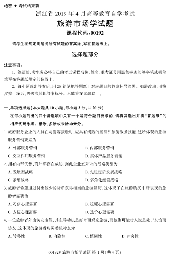 上一篇:浙江省2019年4月自考00198旅游企业投资与管理真题