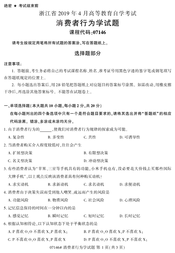 - 2024年10月浙江自考00102世界市场行情试题 12-27