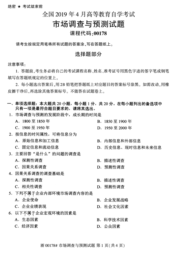 - 2024年10月浙江自考00102世界市场行情试题 12-27