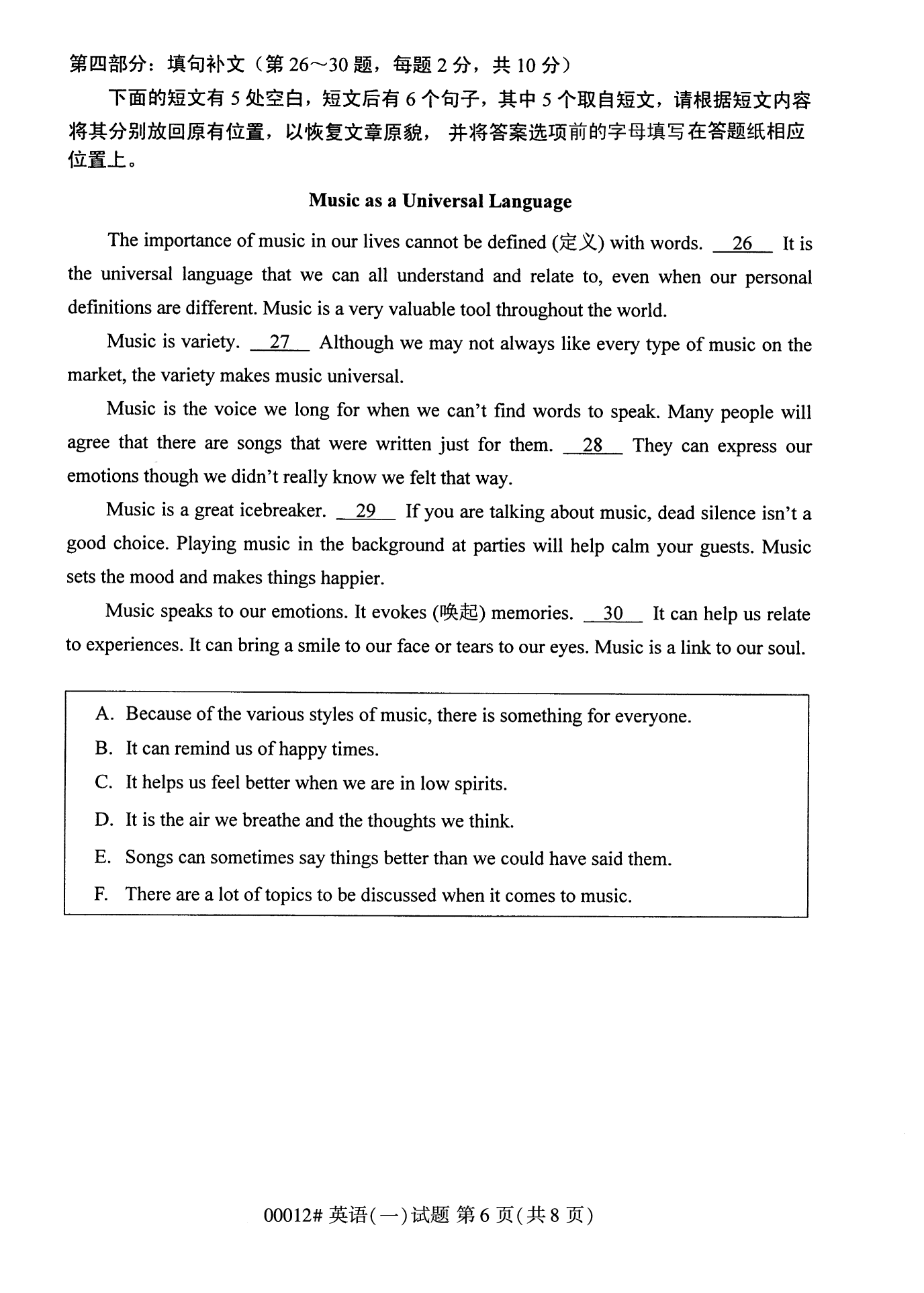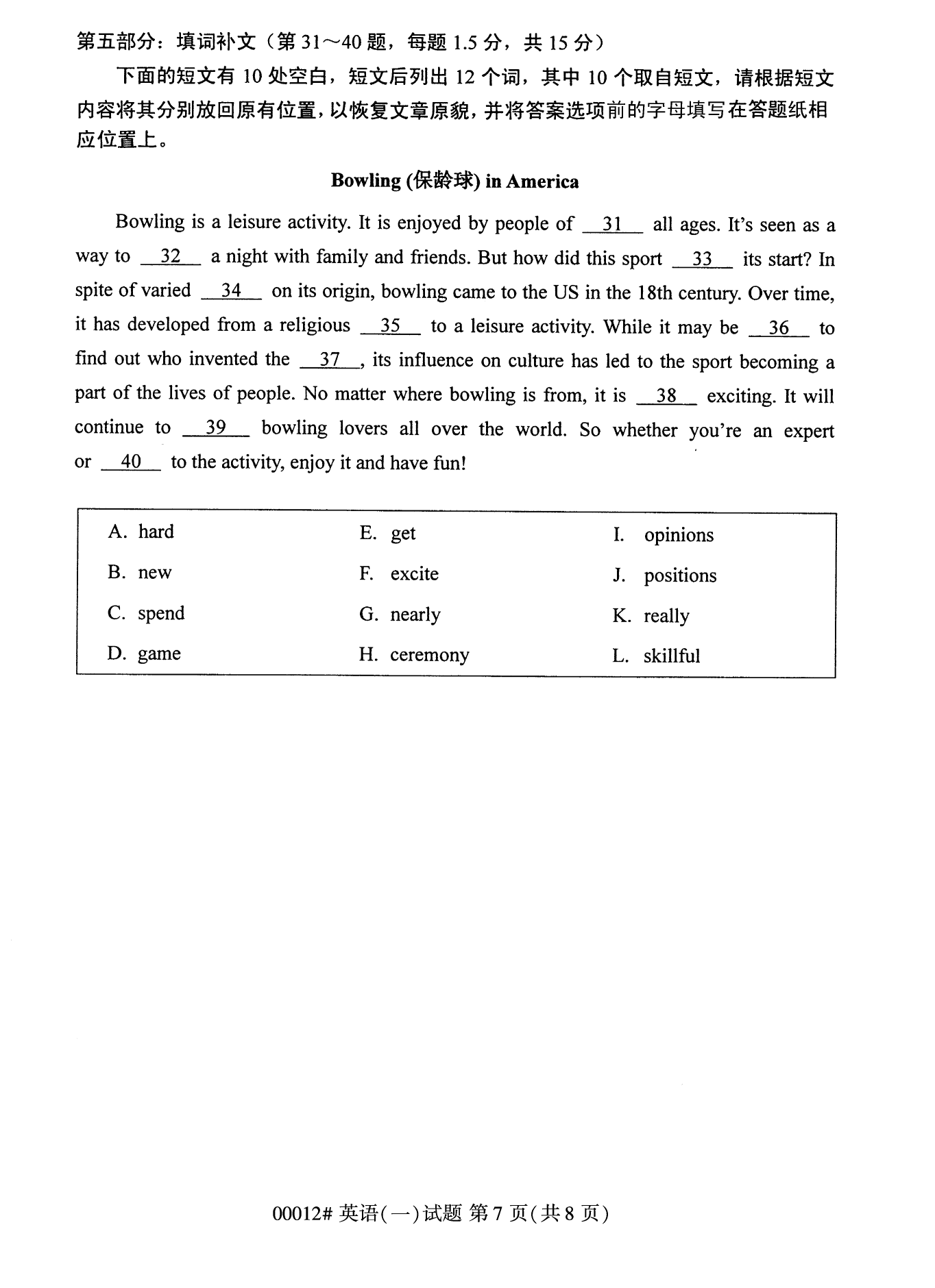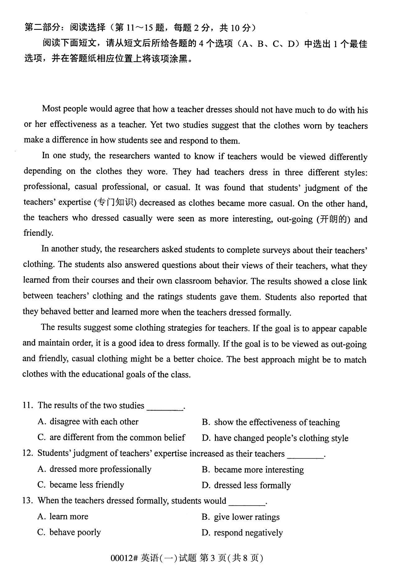 以上就是“2022年10月浙江自考00012英语(一)试题”的全部内容,关注浙江自考网,我们将持续为您推送有关浙江自考复习备考、自考资讯、相关政策等信息,自考报名流程和考试注意事项不懂的,想了解自考动态的,或者是自考信息不懂的考生,可添加【浙江自考交流群】了解更多。