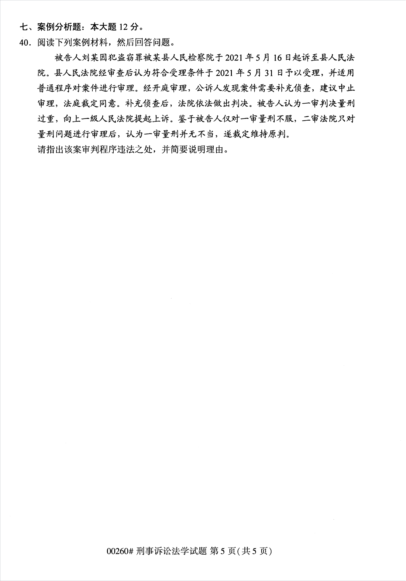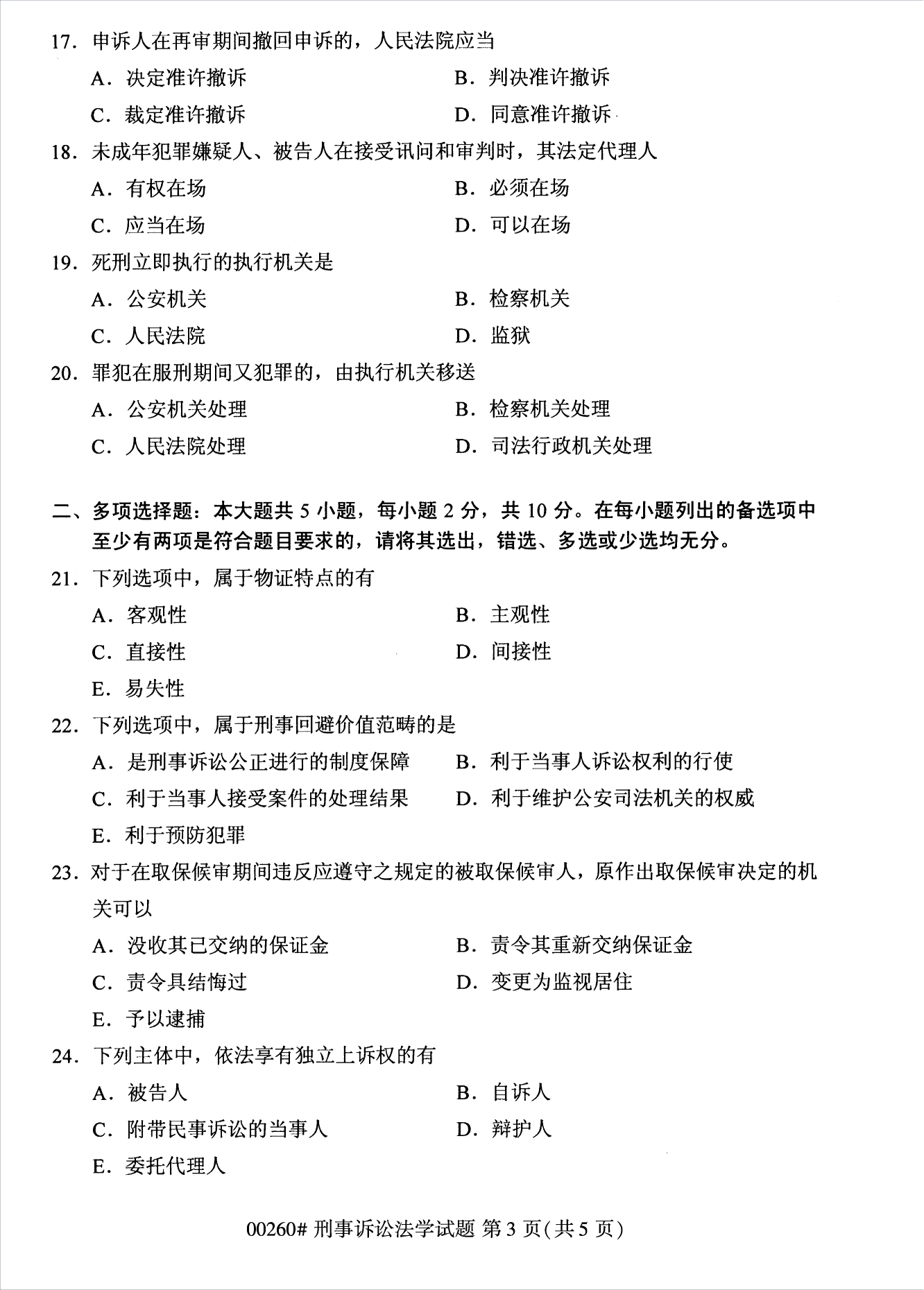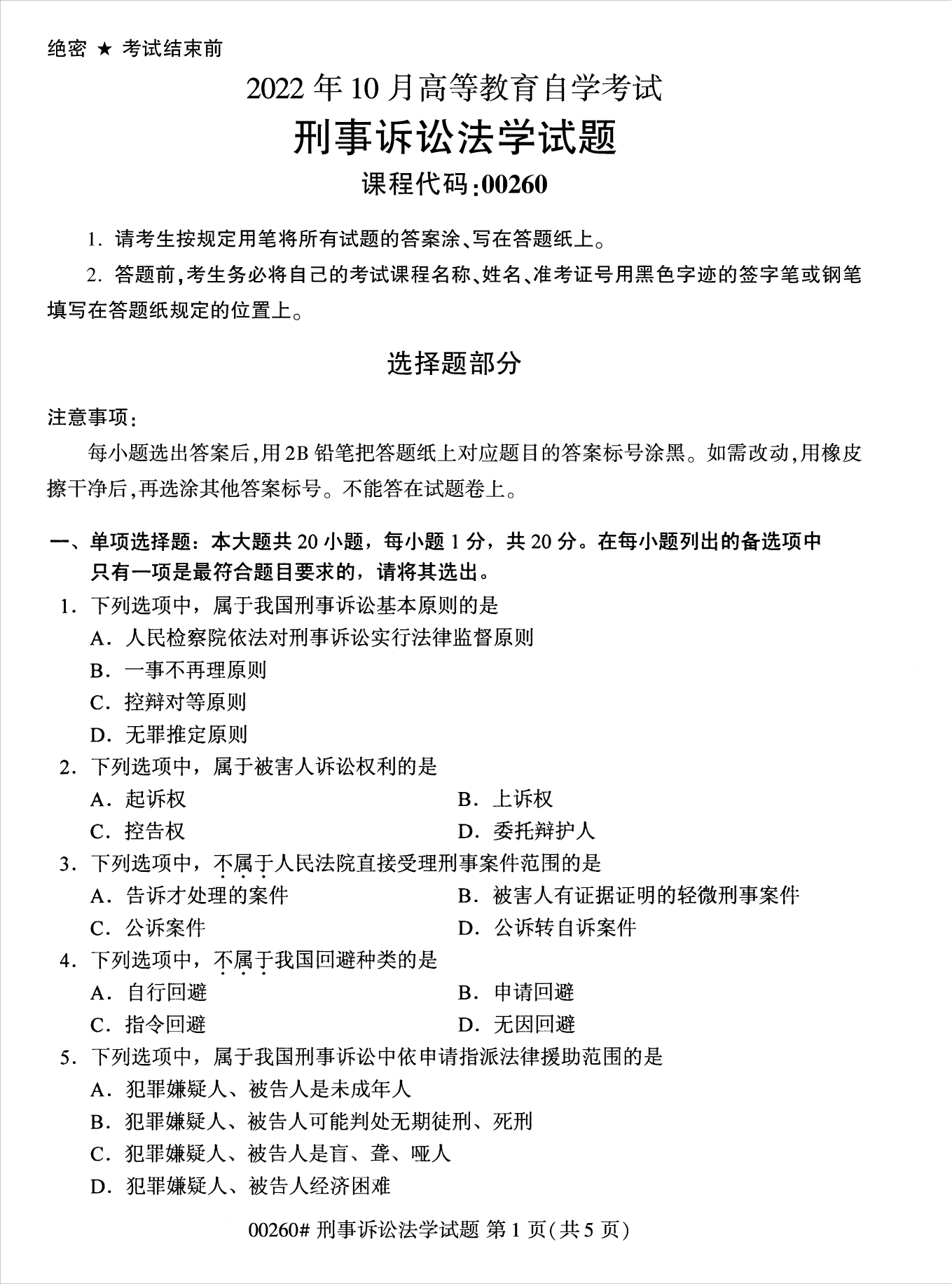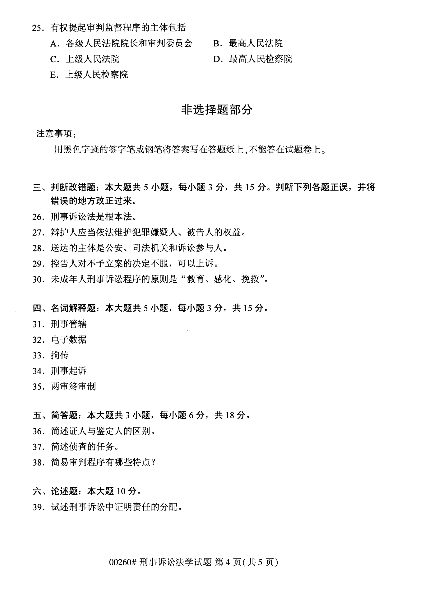 2022年10月浙江自考00260刑事诉讼法学试题