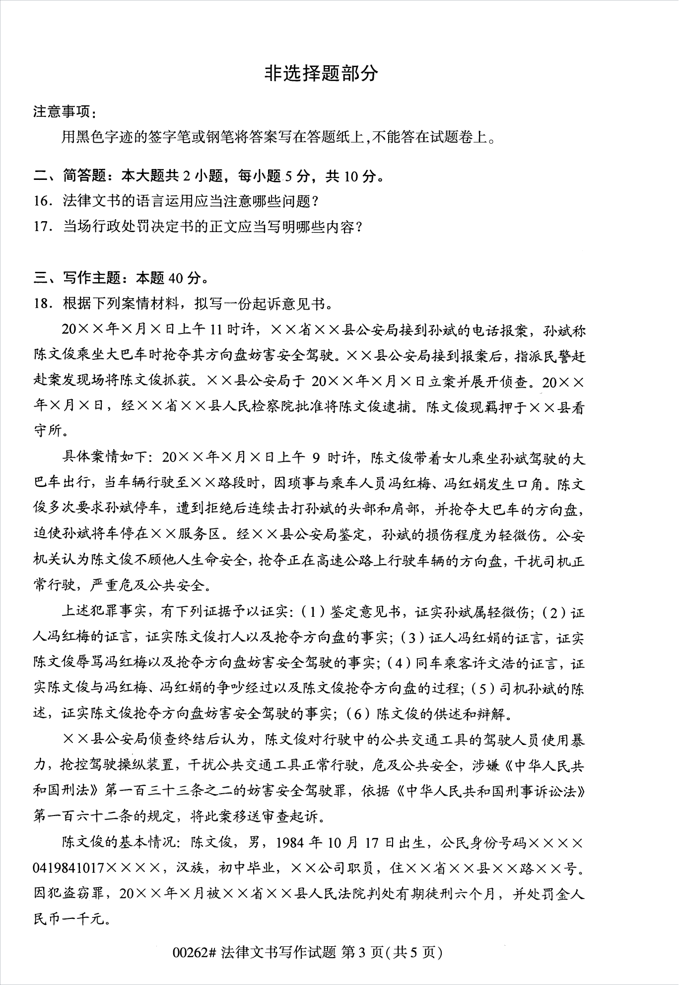 • 所在位置:浙江自考网 > 自考试卷 > 2022年10月浙江自考00262法律文书写作试题