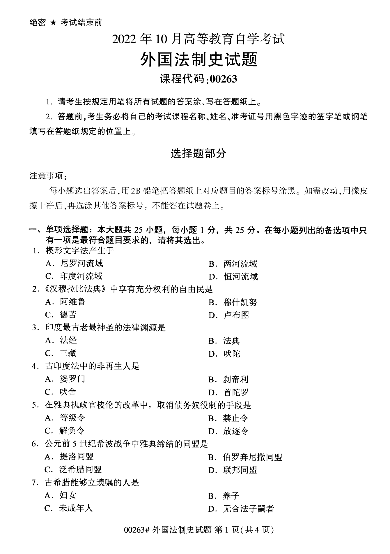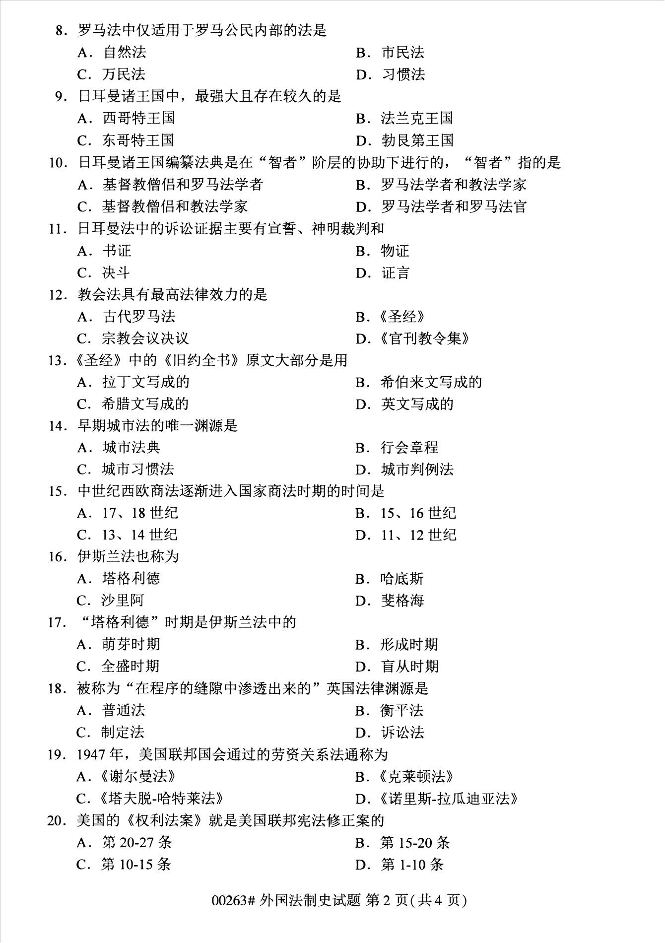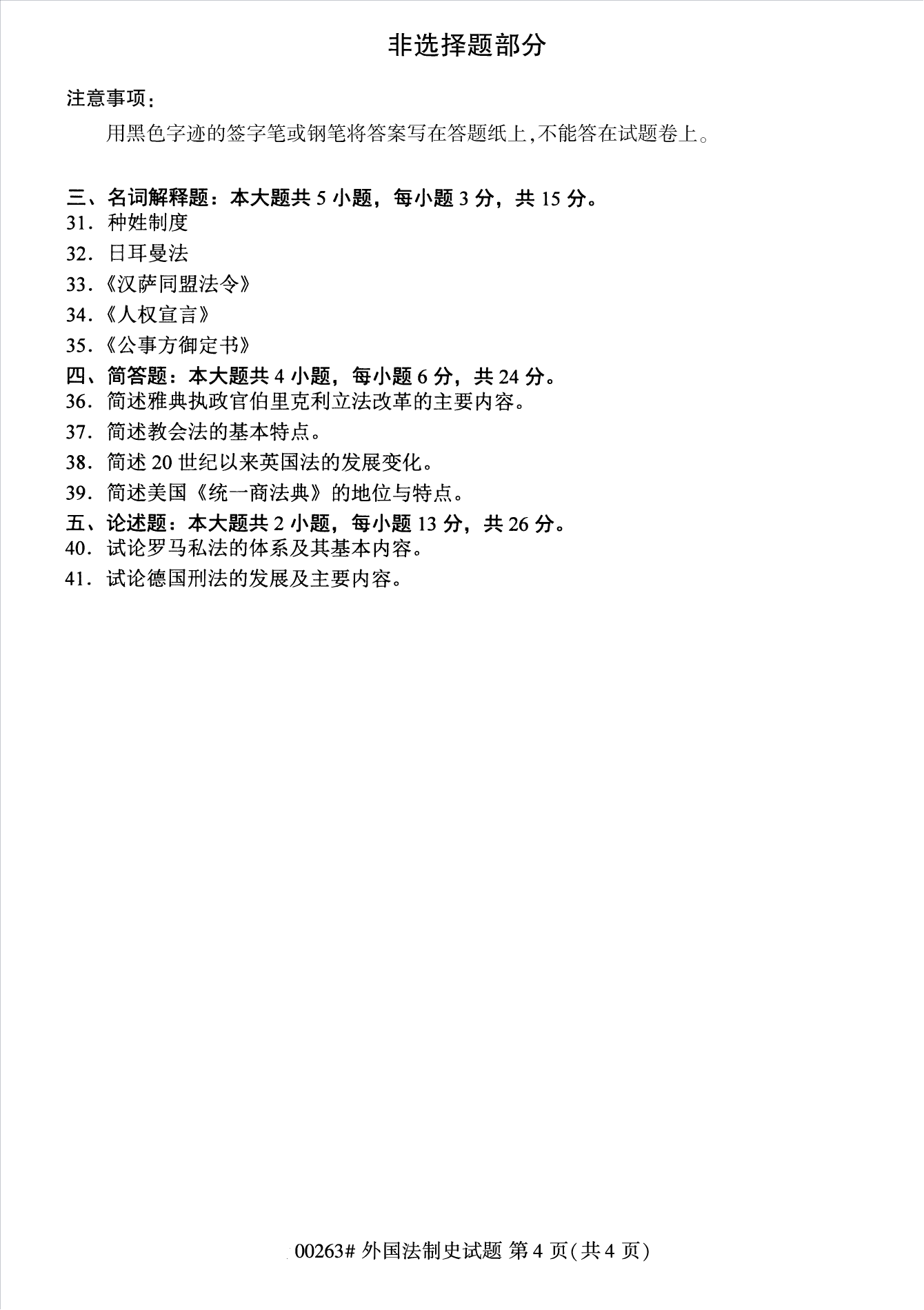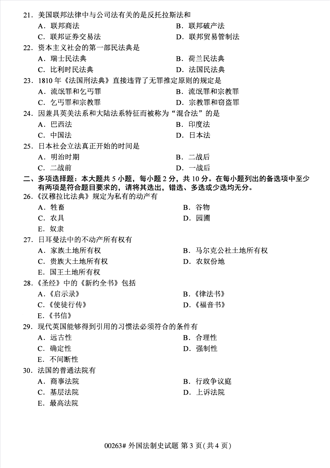 2022年10月浙江自考00263外国法制史试题