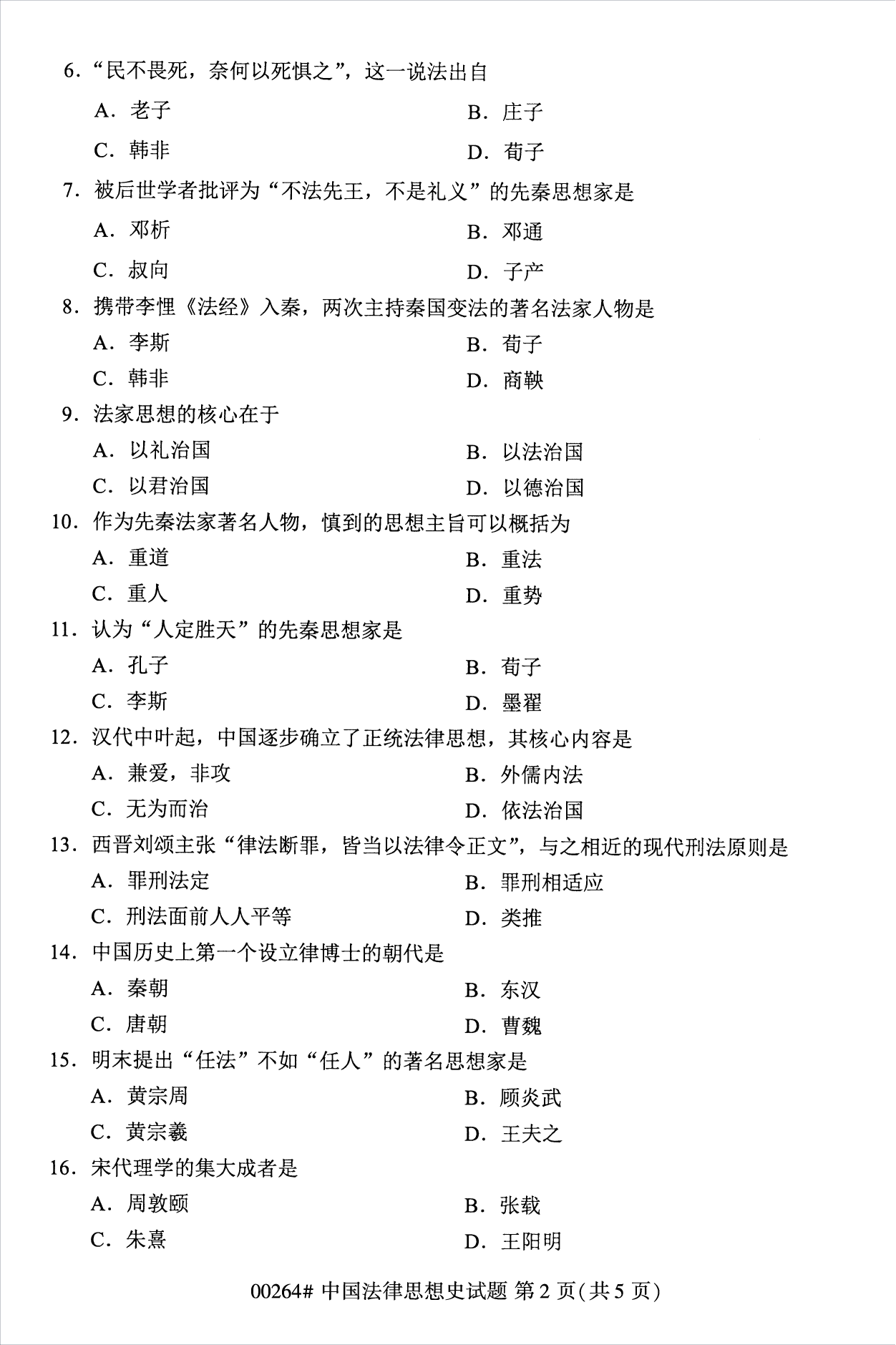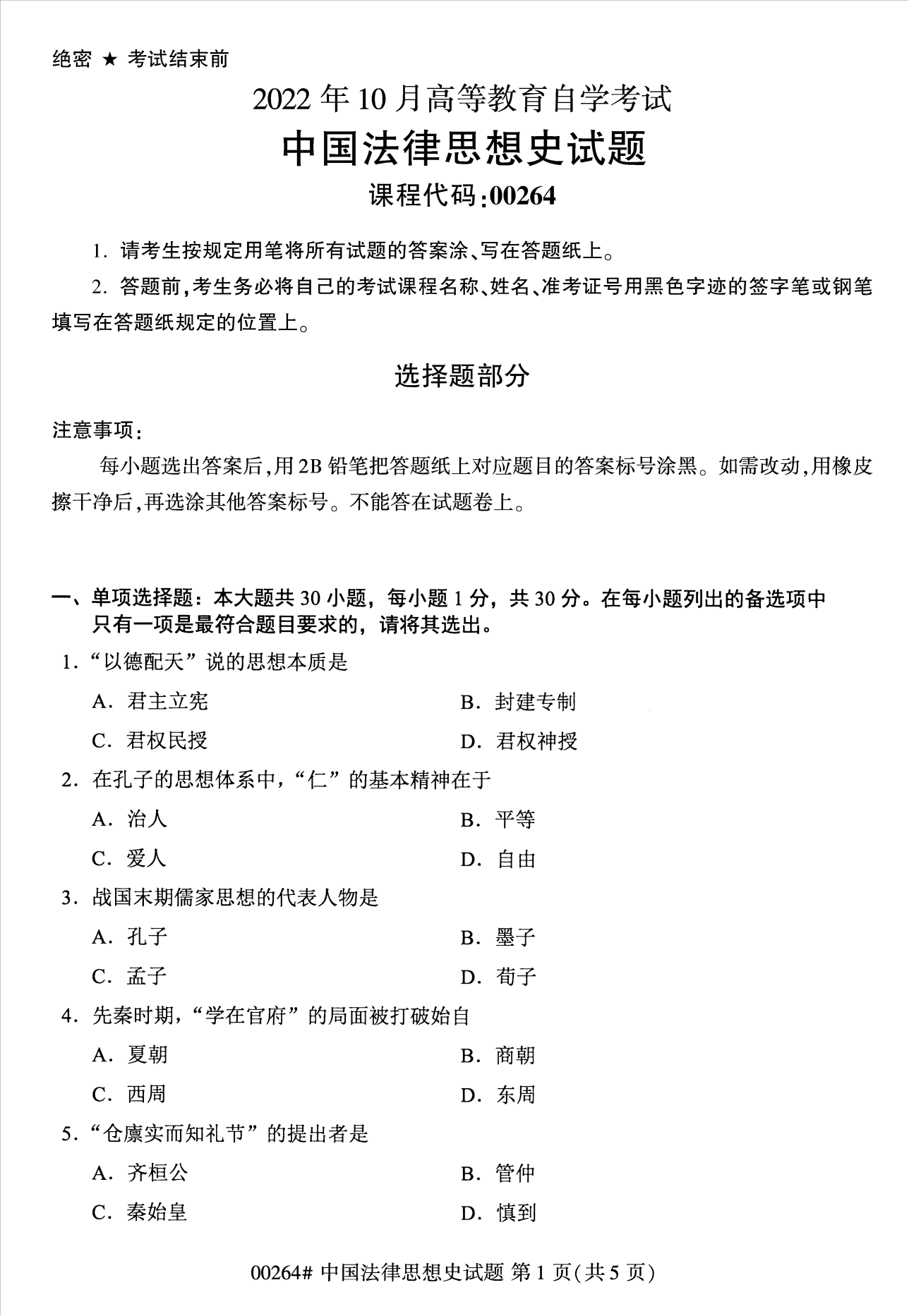 2022年10月浙江自考00264中国法律思想史试题