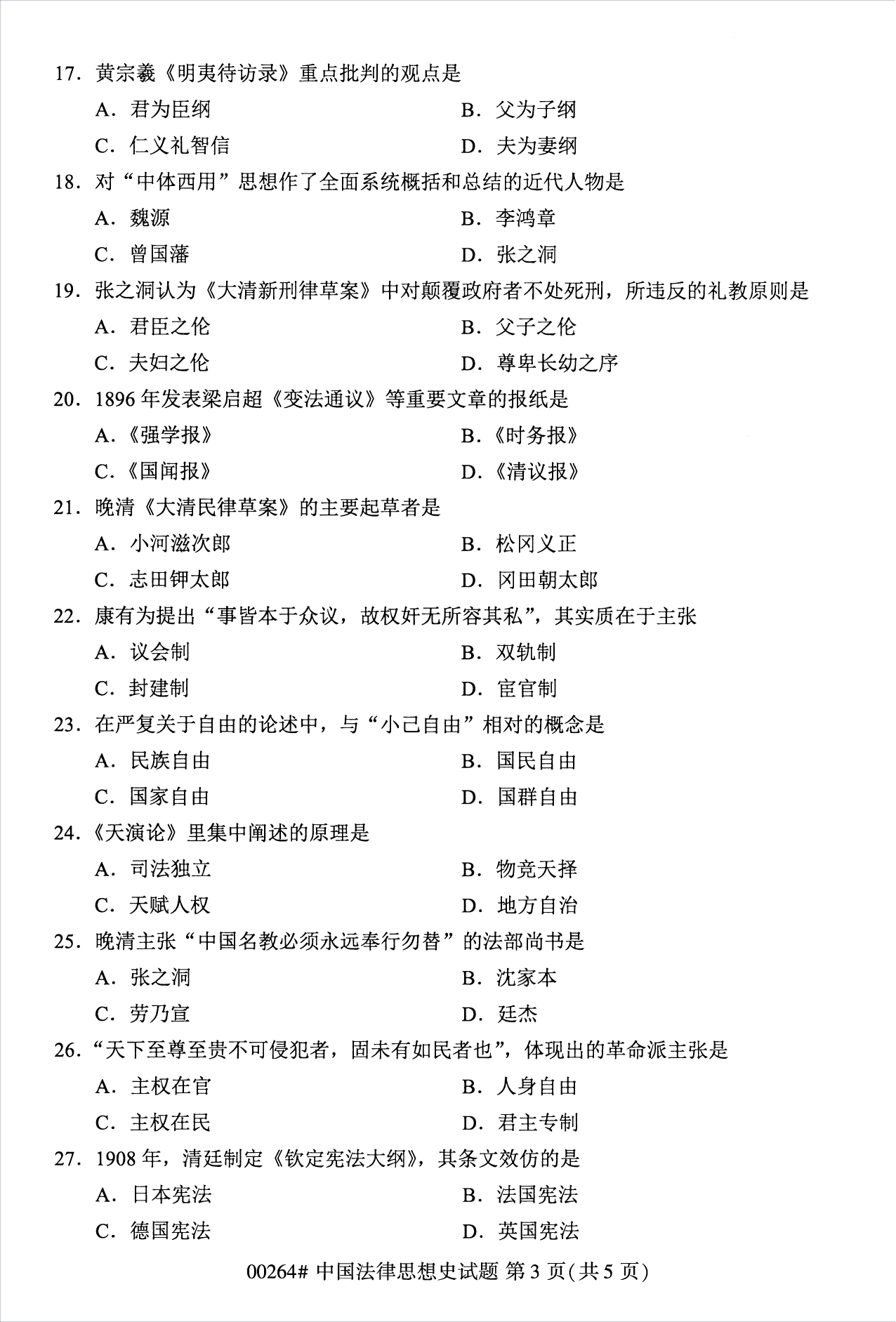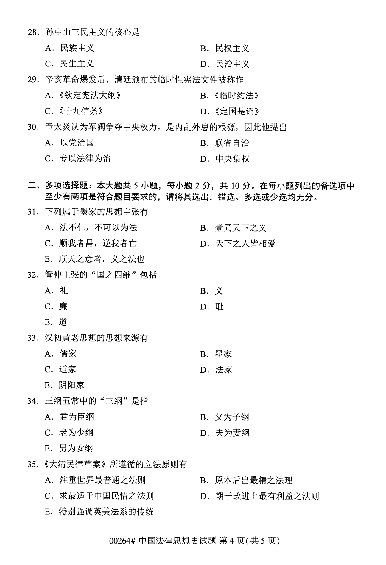 • 所在位置:浙江自考网 > 自考试卷 > 2022年10月浙江自考00264中国法律思想史试题