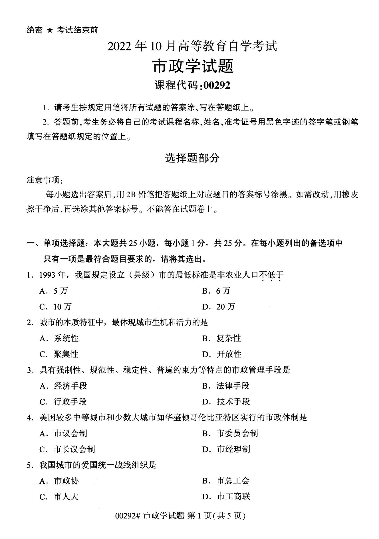 • 所在位置:浙江自考网 > 自考试卷 > 2022年10月浙江自考00292市政学试题