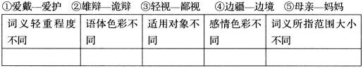 34.分析下列各组同义词的差异,把序号填入表中相应的空格。考生按下表格式抄写在答题卡(纸)上作答。