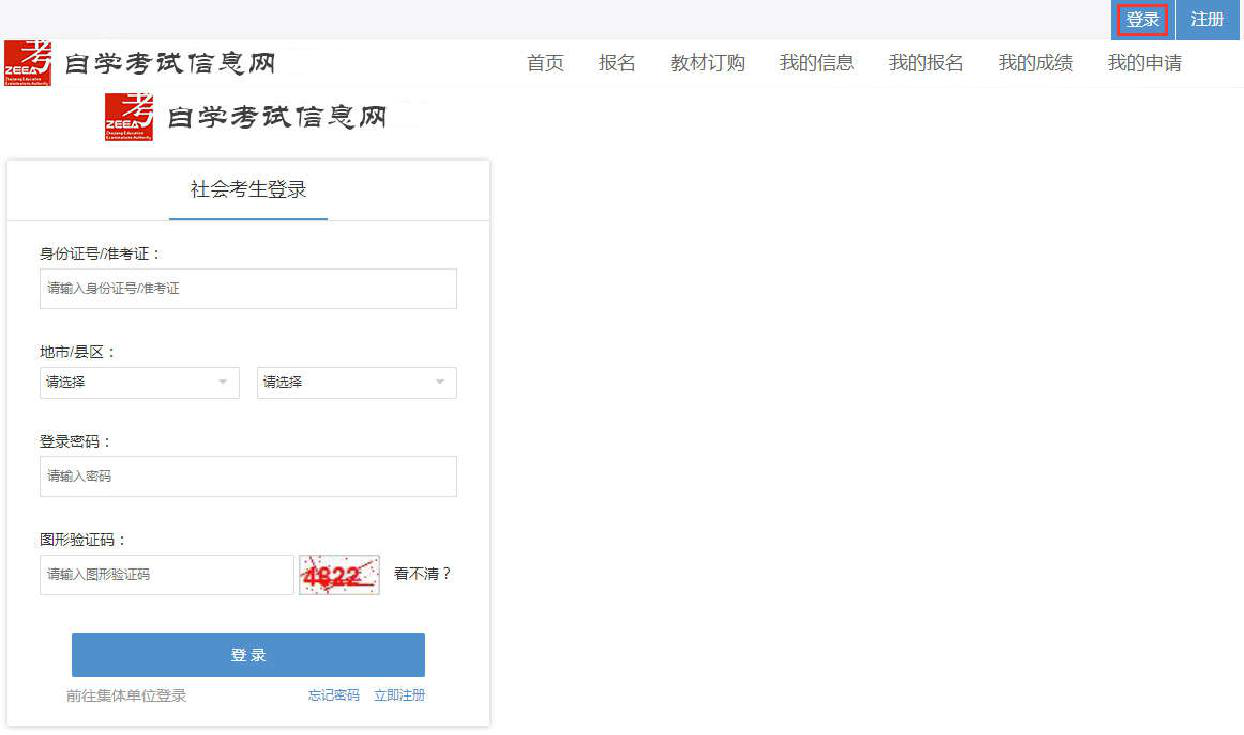 考生登陆浙江省教育考试院自学考试信息网(zk.zjzs.net),在“社会考生登录”界面使用身份证号或准考证号登录,登录密码为身份证号后六位。由于身份证号或密码错误无法登录:首次登录系统的考生,请与当地教育考试机构联系;原已登录过系统的考生,通过“忘记密码”功能自行重置密码。
