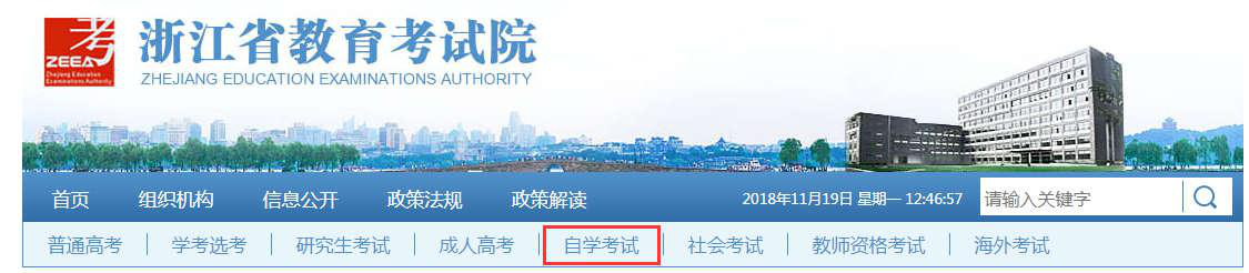 ②浙江省教育考试院官方网站(www.zjzs.net):首页-自学考试