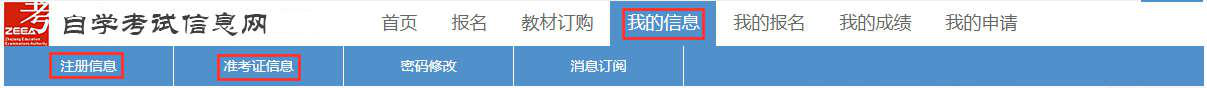 浙江省教育考试院自学考试信息网(zk.zjzs.net)-我的信息-注册信息、我的信息-准考证信息