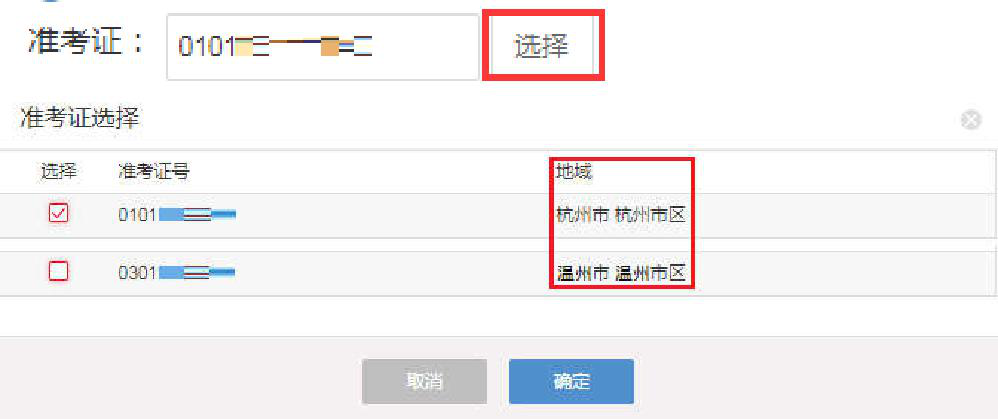 只有一个准考证的考生,系统直接显示,无需选择。有二个或以上准考证的考生需选择使用哪个准考证进行毕业申请登记,所选准考证下须有合格课程。系统根据准考证号默认确定考生提交毕业申请材料的教育考试机构,有二个或以上准考证的考生按实际常驻地等情况选定用于毕业申请登记的准考证,避免跨地区提交毕业申请材料。对应关系参看《浙江省自学考试毕业申请登记所选准考证与提交材料县区对照表》(附件2)。