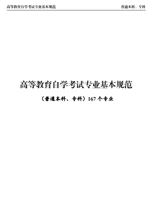 附件:高等教育自学考试专业基本规范(普通本科、专科167个专业)