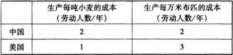 A.美国小麦生产的绝对成本低于中国 B.美国小麦生产的相对成本低于中国