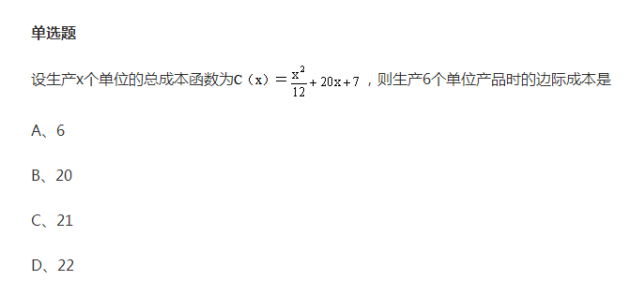 高等教育自考高等数学(一)单题:边际成本011