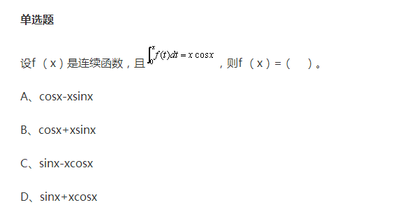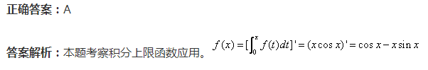 高等教育自考高等数学(一)单题:积分上限函数应用017
