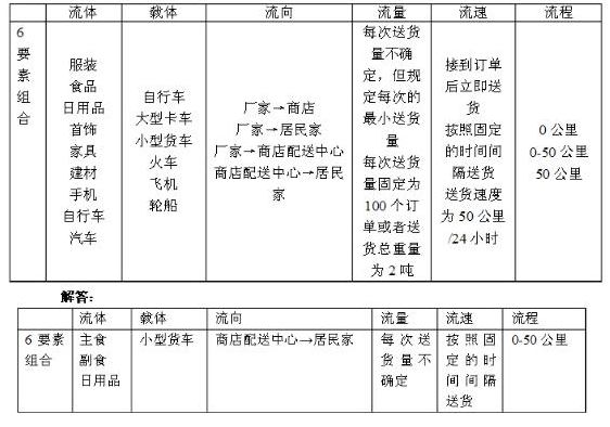 6 要 素 组 合 6 要素如表。请选择可能的要素,所有要素选择正确后才能得到该商店配送方案 中的 6 要素组合,写出正确结果。
