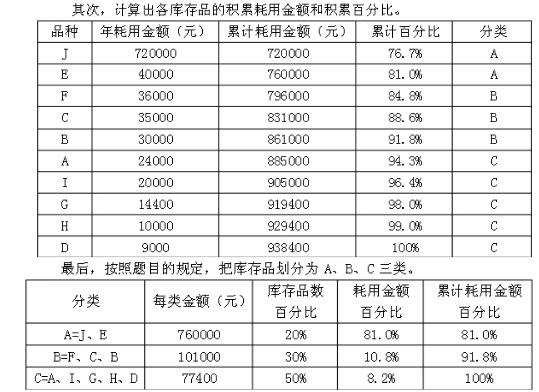 解答: 首先计算出各种库存品的年耗用金额,并按从大到小排序。 5