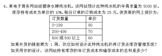 此问题属于价格折扣情况下,设计库存管理系 统。
