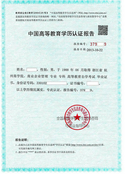 学历认证报告样张