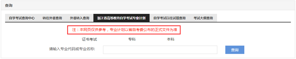 专业计划:首页-网上查询-自考-自学考试查询中心-浙江省高等教育自学考试专业计划