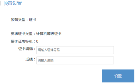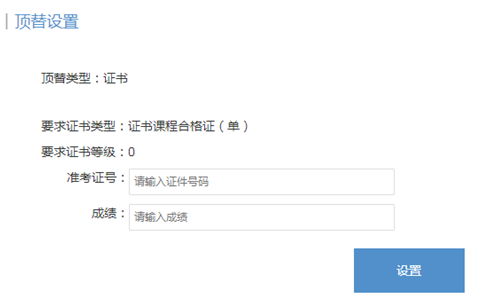 注意事项:“00018计算机应用基础”和“00019计算机应用基础(实)”都须顶替设置,证书编号填写等级证书上的证书编号,成绩填写“合格”。