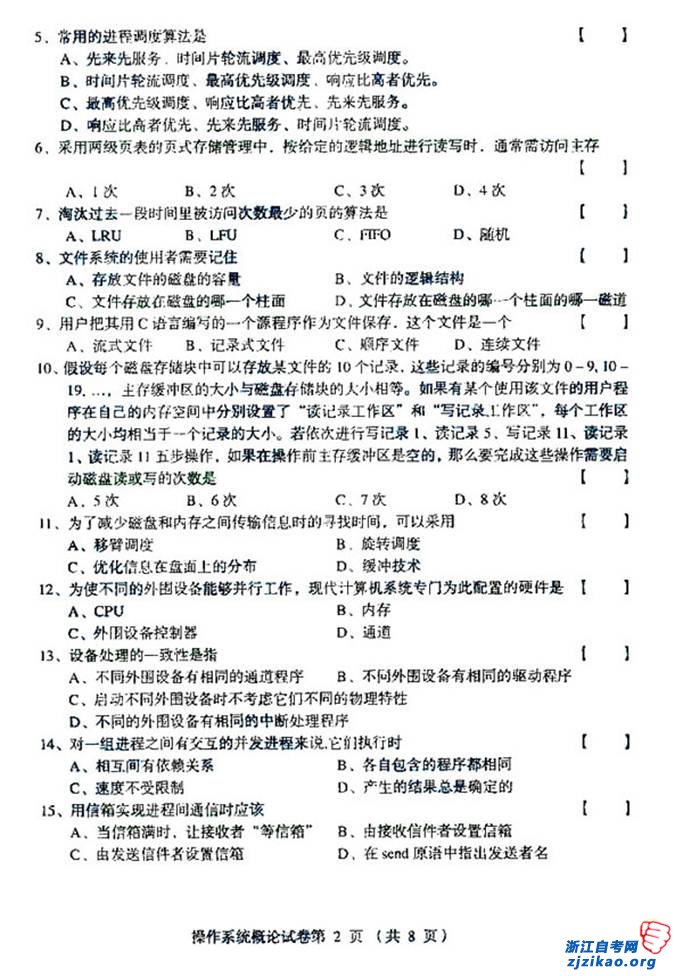 2005年4月全国自考02323《操作系统概论》试题(浙江自考)