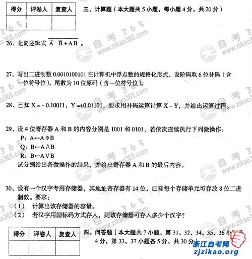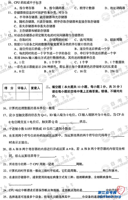 2009年10月全国自考02384《计算机原理》试题(浙江自考)