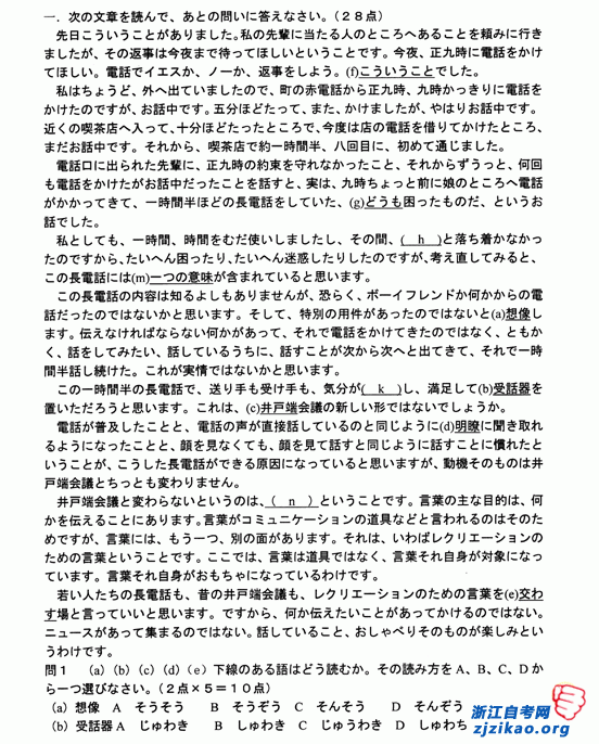 浙江省2012年1月高等教育自学考试日语阅读(二)试题课程代码:00844