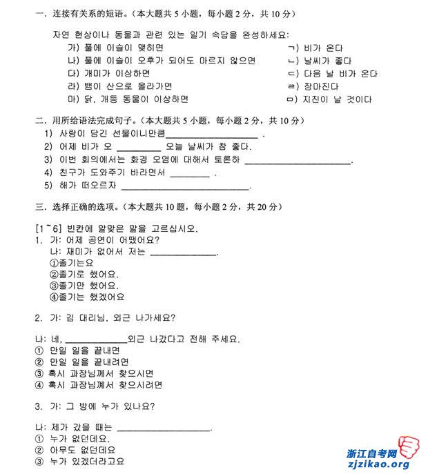 浙江省2012年7月自考《01113韩国语阅读》试题