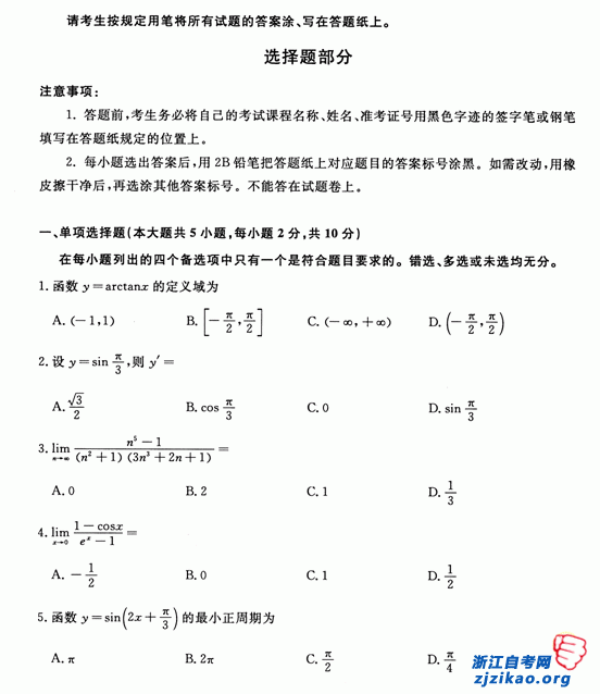 浙江省2012年10月高等教育自学考试高等数学(四)试题课程代码:06604