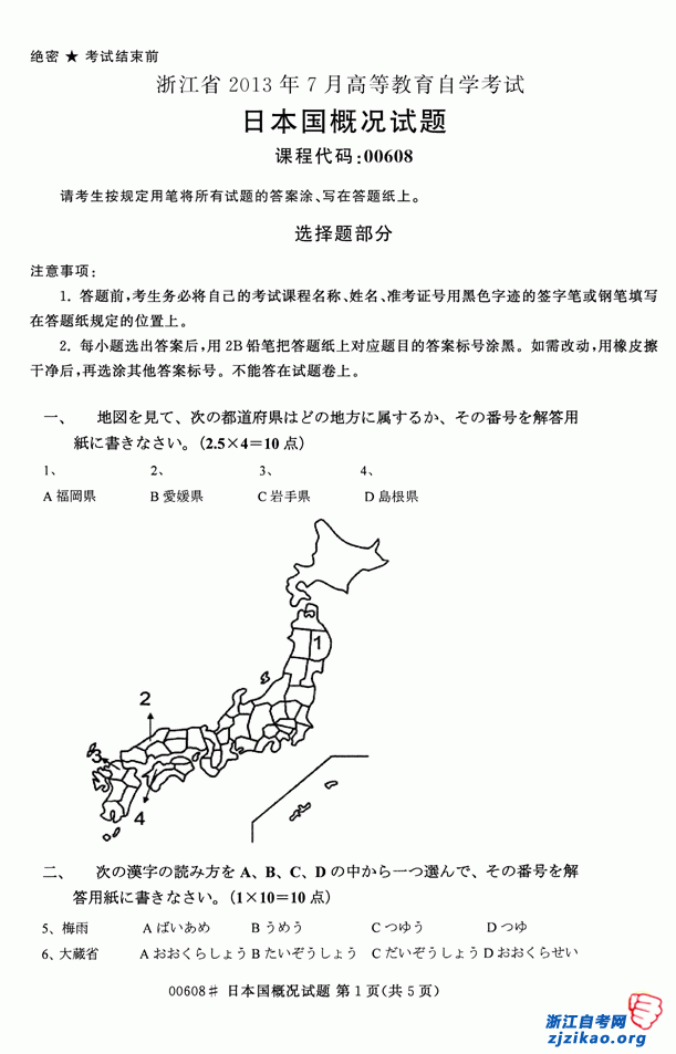 浙江省2013年7月高等教育自学考试日本国概论试题课程代码:00608