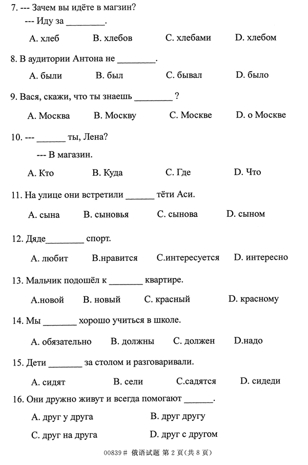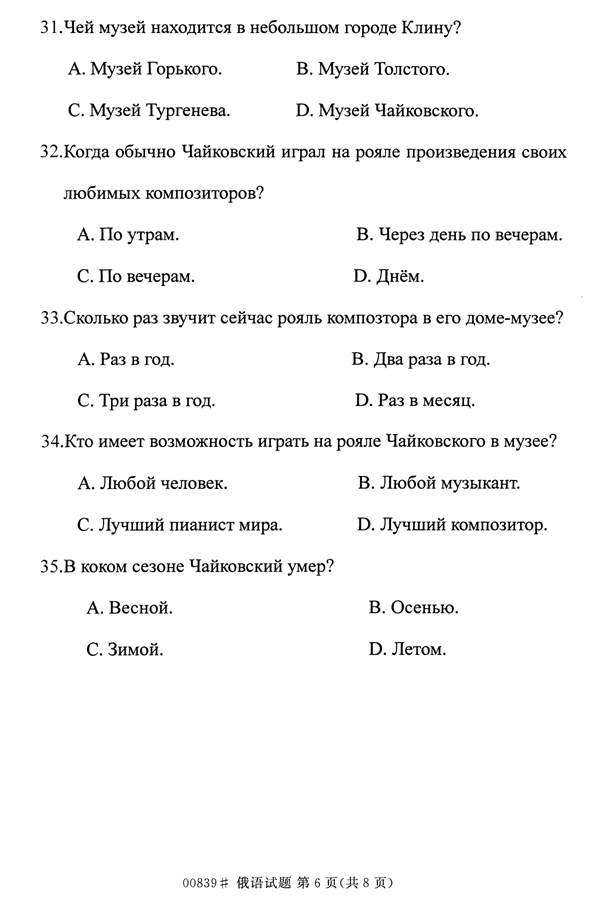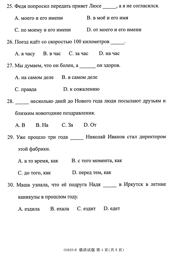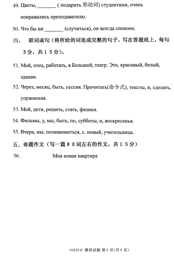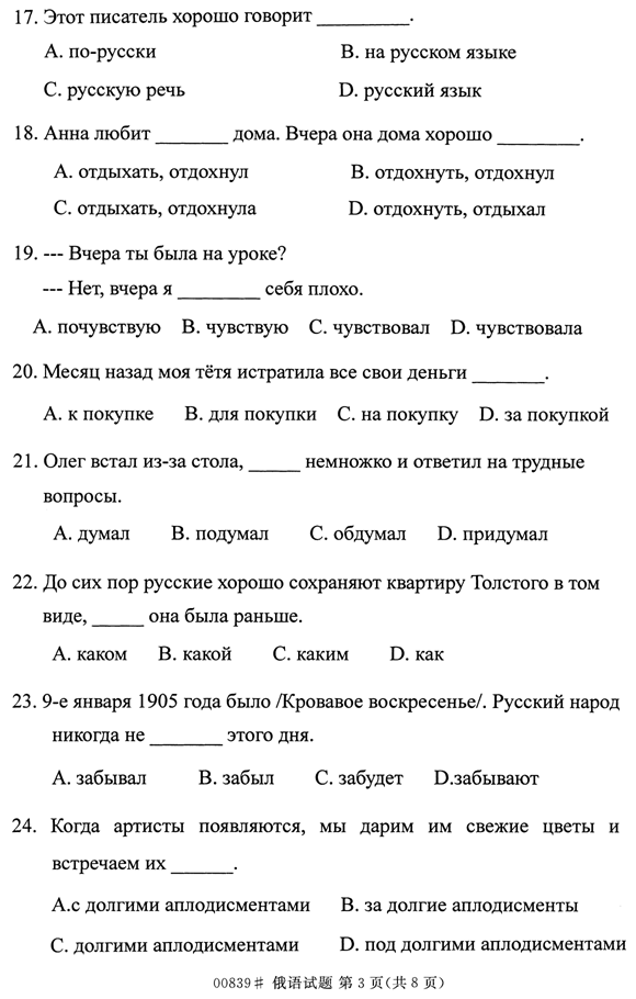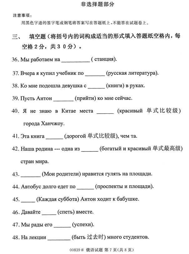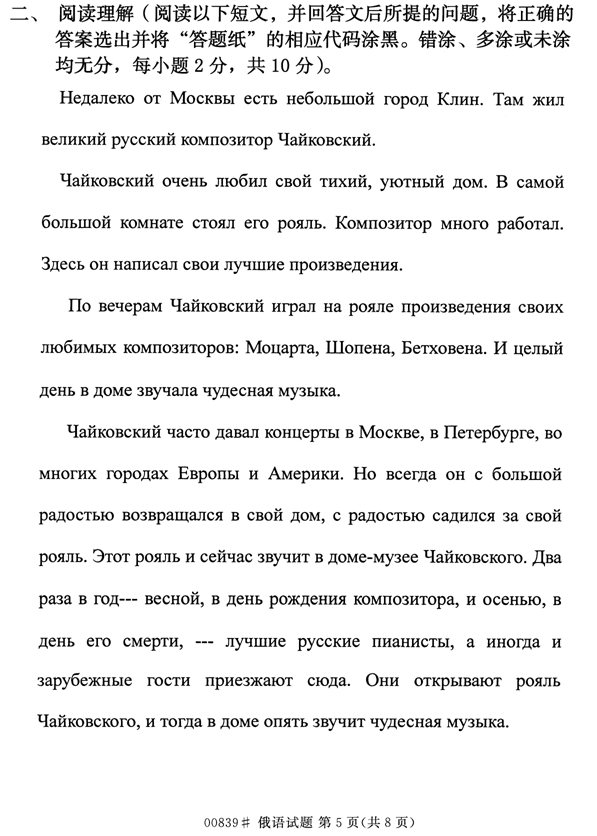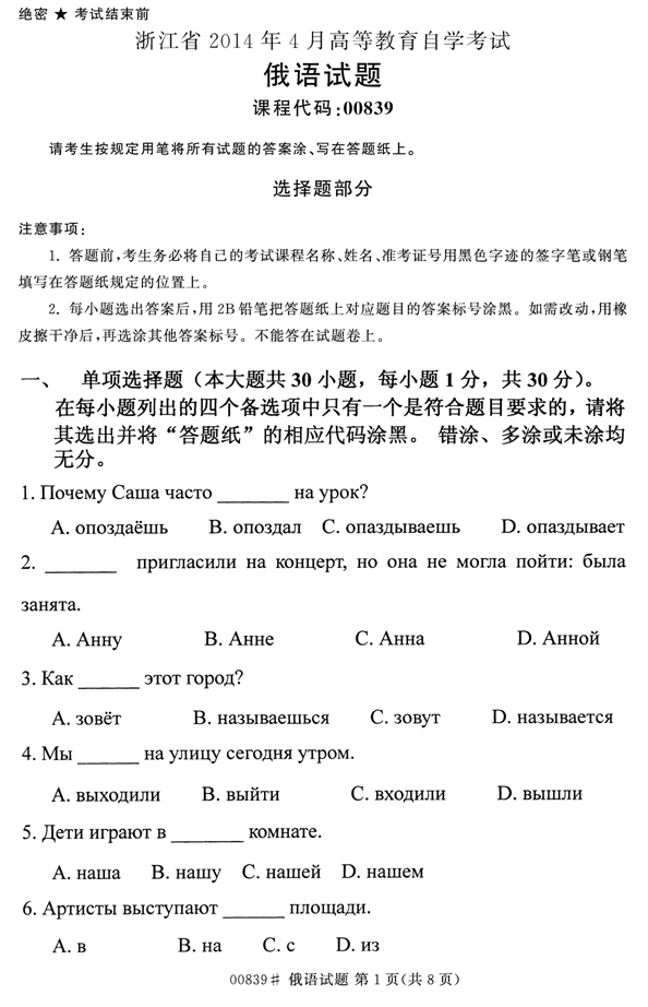 浙江省2014年4月自考00839俄语试题