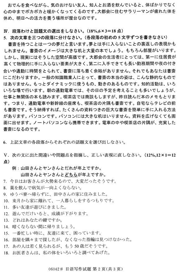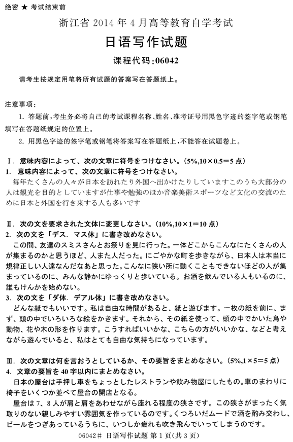 浙江省2014年4月自学考试00844日语阅读(二)试题